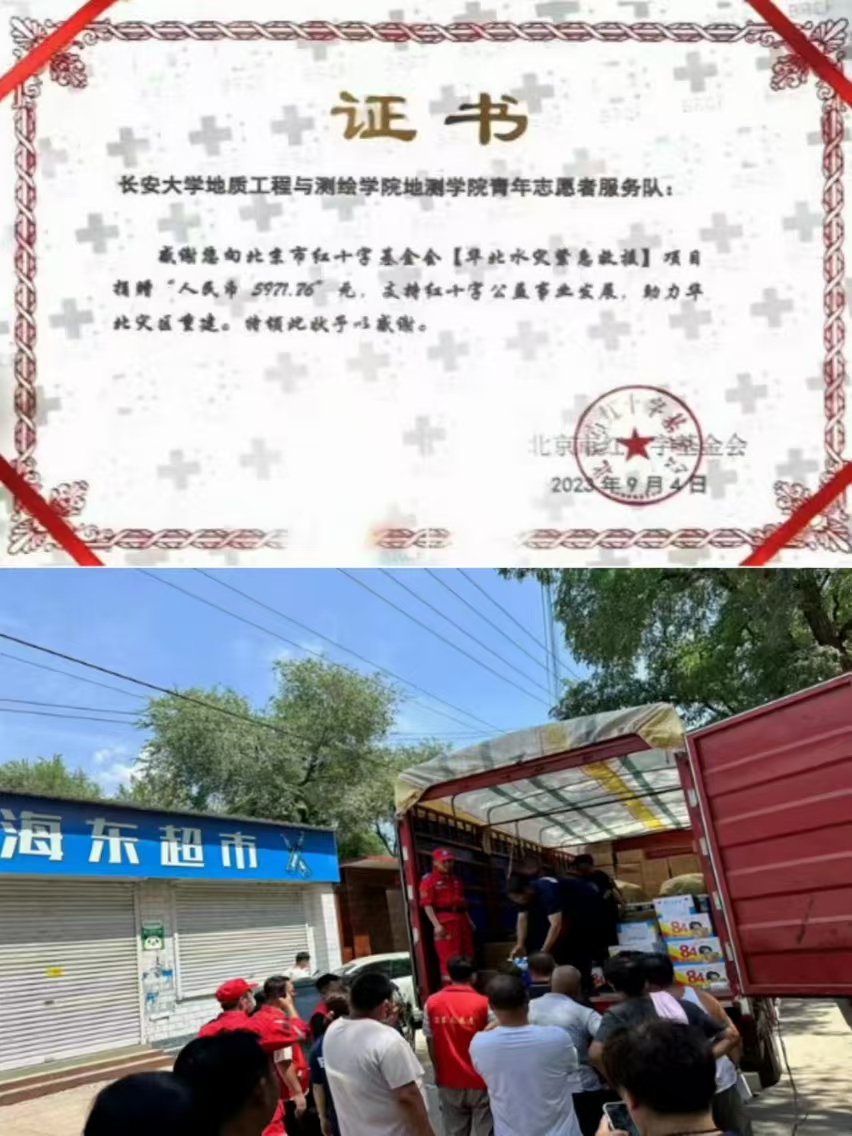 受台风“杜苏芮”影响,华北地区在7、8月遭受严重汛灾。地测青年志愿服务队积极响应国家号召,第一时间联系基金会,组织全校开展爱心募捐活动,为受灾的华北灾区提供援助。在各方的努力下,此次募捐活动共有1833人参加,共计捐款9571.71元,为华北地区的灾后重建工作提供了实实在在的支持和帮助,获得了两基金会颁布的捐赠证书,为社会贡献出了一份长大力量。