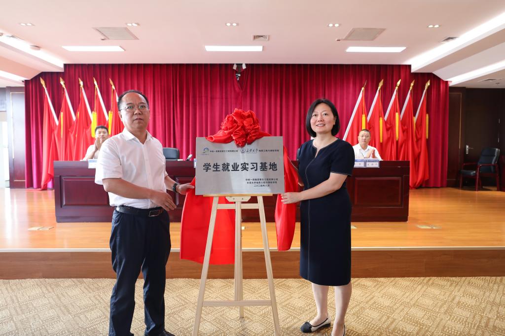 党委书记王树莹与中铁一局总工程师王征为校企共建学生就业实习基地揭牌。本次揭牌对于在于深化产教融合,推动人才培养和产业发展具有重要意义,有助于校企双方共同发展、共同进步,实现双赢