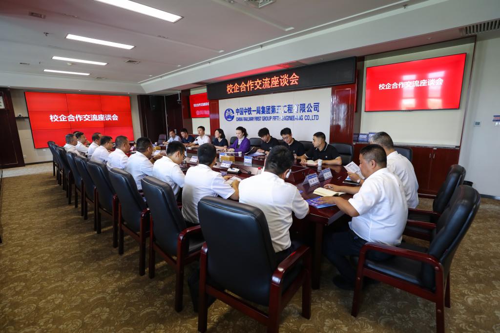 一行与中铁一局五公司领导开展深入座谈,就人才培养模式、专业建设需求、行业发展需要等方面进行交流。