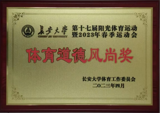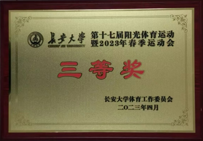 取得长安大学第十七届阳光体育运动会暨2023年春季运动会三等奖,并获得“体育道德风尚奖”。