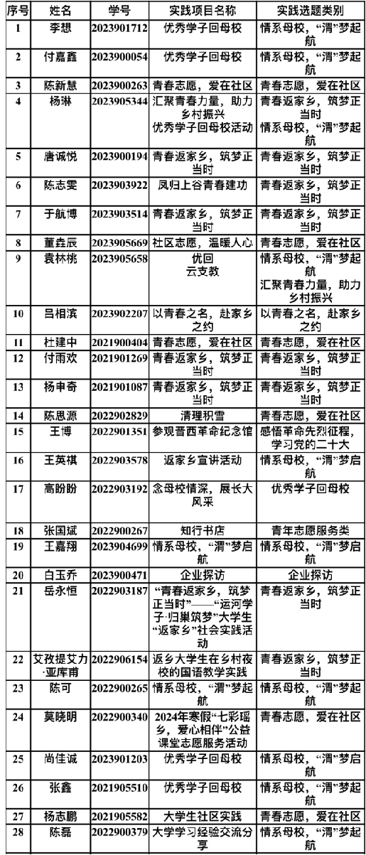 为深入学习宣传贯彻习近平新时代中国特色社会主义思想和党的二十大精神,贯彻落实习近平总书记关于青年工作的重要思想,引导和帮助广大青年学生上好与现实相结合的“大思政课”,推动和加强团员和青年主题教育走深走实,让学生在社会实践中坚定理想信念、站稳人民立场、练就过硬本领、投身强国伟业,成为有理想、敢担当、能吃苦、肯奋斗的新时代好青年,我校开展2024年大学生寒假社会实践活动。