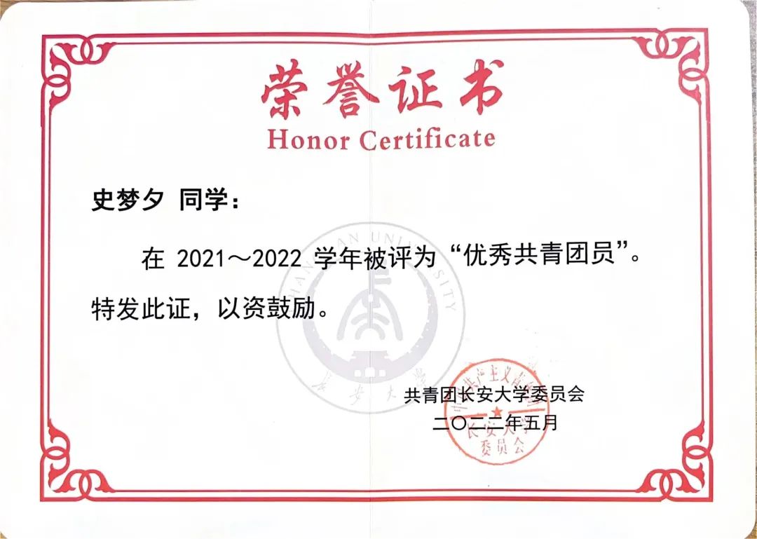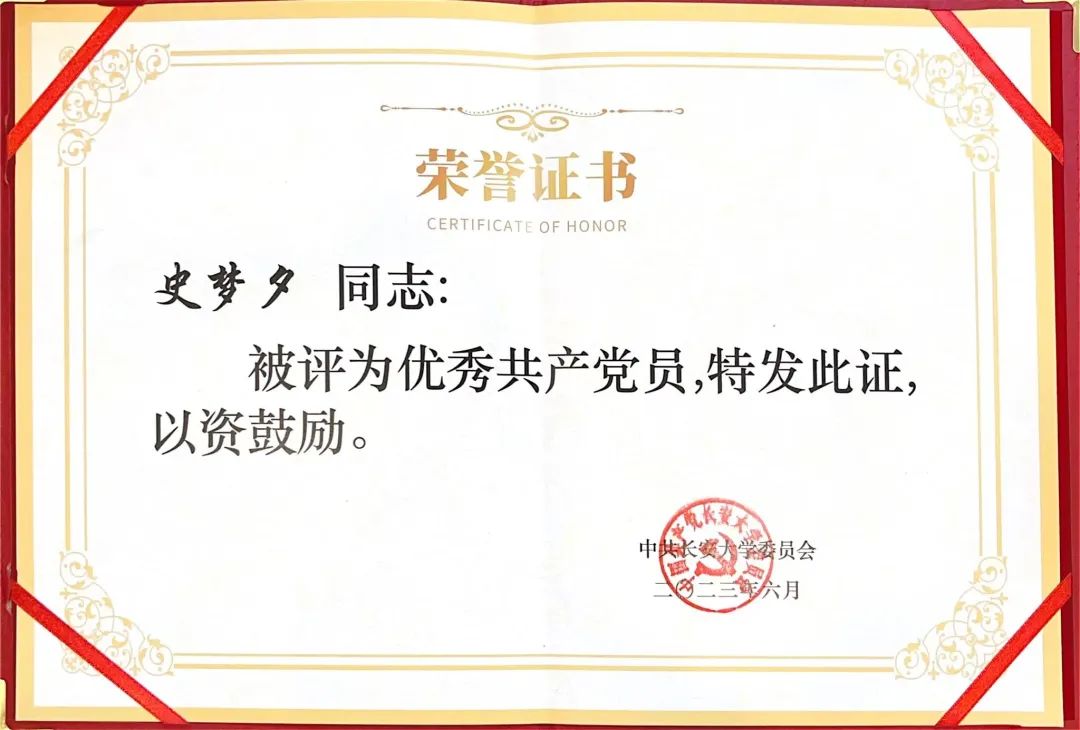 史梦夕,男,中共党员,2021年9月推免成为长安大学太阳城网站
