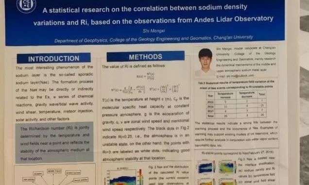 依托国家自然科学基金面上项目(基于子午工程激光雷达的突发钠层新机制研究),他以第一作者在《Journal of Geophysical Research: Atmospheres》上发表了题为“Peculiar Wave Structure of the Mesospheric Sporadic Sodium Layer Observed by Lidars in Hefei (31.8°N, 117.3°E) and Wuhan (30.5°N, 114°E), Central China”的学术论文, 《JGR: Atmosphere》是地学领域高质量科技期刊分级T1期刊、自然指数(Nature Index,NI)选取的68种世界一流科技期刊之一,是中国科学院二区TOP期刊,JCR分区一区期刊。