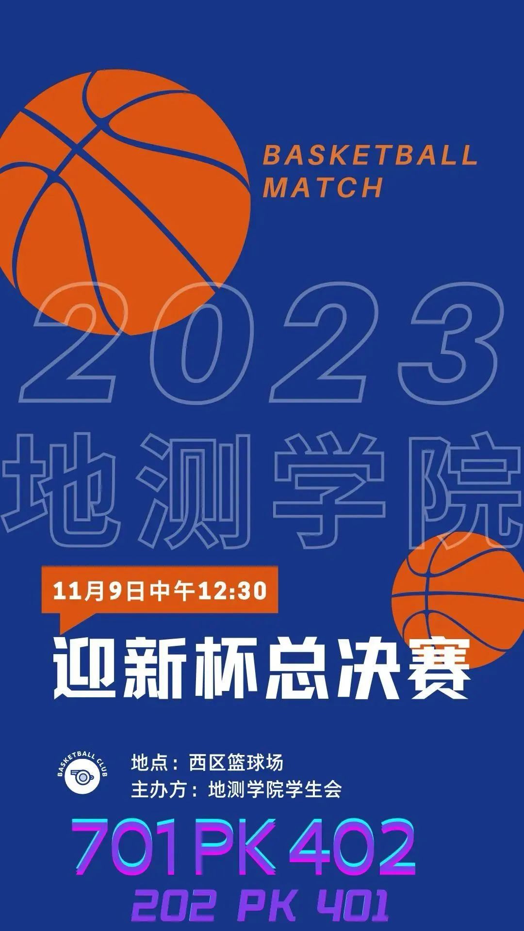 无论你是哪支球队的忠实粉丝,还是只是热爱篮球的观众,周四的比赛都将是一场视觉和情感的盛宴。让我们一起创造美好的回忆,庆祝这个激动人心的“迎新杯”篮球赛!周四中午十二点半,西区篮球场,我们不见不散!