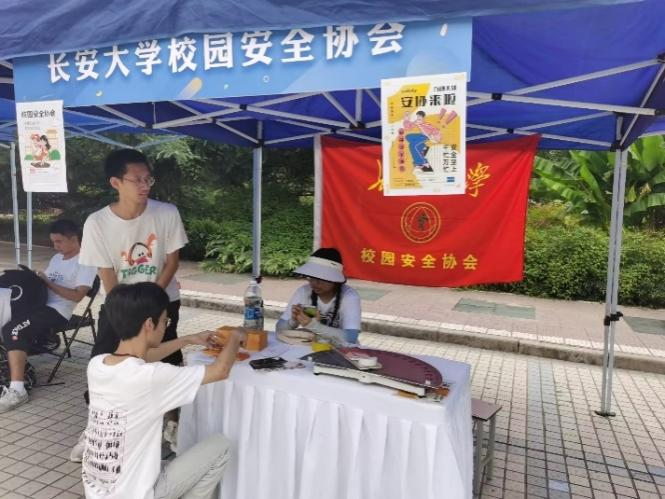 为促进新生对校园组织、社团、协会的了解,2023年 9月9日,学生社团嘉年华活动在树蕙园广场及滋兰苑广场举行。长安大学校园安全协会成功参与此次社团嘉年华活动,在滋兰苑广场设立帐篷点,进行协会宣传活动。