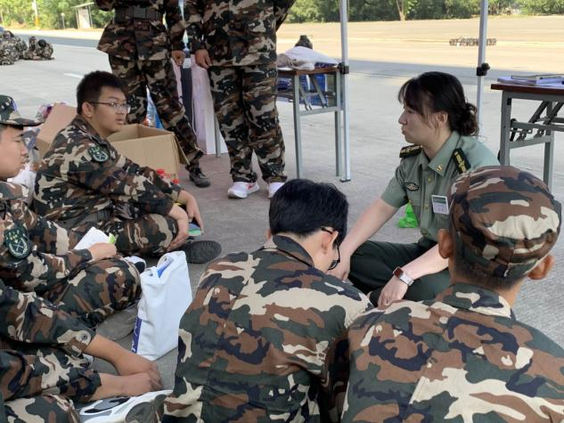 在训练场,军训师第五团政委潘迎走到学生中间,与学生进行亲切交流,并对同学们的昂扬向上的精神状态和步调一致的出色表现给予了充分肯定。她强调,军训是落实立德树人的重要环节,是大学生活的重要组成部分。同学们虽然皮肤晒黑了,但身体更强健了,意志更坚韧了,集体意识更牢固了。她鼓励参训学生,牢记习近平总书记殷切嘱托,经风雨、见世面、壮筋骨、长才干,坚决服从教官指挥,不折不扣完成军训任务,以优异的成绩交出军训满意答卷。