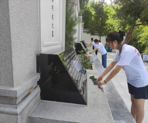 图为实践队员为烈士献花