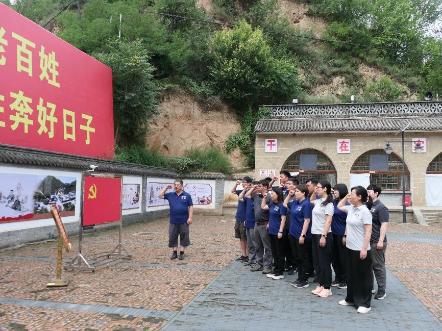 在切身感悟了习近平总书记当年在梁家河艰苦环境下所表现出的“艰苦奋斗、实干担当、敢为人先”的知青精神之后,全体党员同志在戴宏书记的带领下,在村史馆广场的党旗前,重温了入党誓词。
