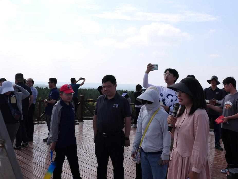 最后,实践队跟随科考队来到了乌兰陶勒盖沙地保护区,乌审旗林草局局长吕琪为队员们讲解了乌审旗生态建设的“三个阶段”“七个模式”,并表示下一步,乌审旗将坚决扛起维护生态安全的重大政治责任,全面落实习近平生态文明思想,全力打好黄河“几”字湾毛乌素沙地攻坚战,统筹山水林田湖草一体化保护和治理,大力推进“三北”等重点生态工程,为筑牢我国北方重要生态安全屏障贡献乌审力量。