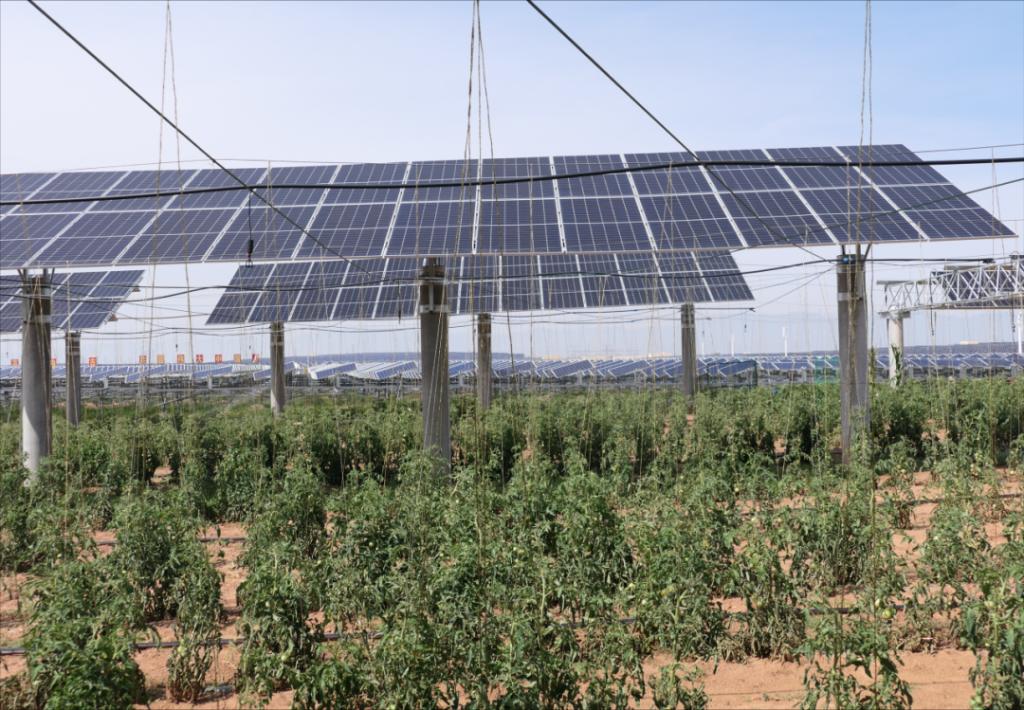 亿利集团在库布其构建了板上双层发电、板下双层生态、板间双层养殖的“三双”立体生态光伏治沙模式。光伏发电与农牧业结合,既可以获得投资回报,又可以修复治理沙漠,保障黄河上游生态安全以及京津冀地区的生态安全。