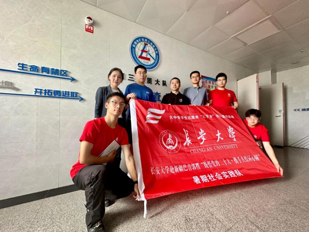 为深入学习贯彻落实习近平新时代中国特色社会主义思想和党的二十大精神,拓宽实践育人广度,结合“访企拓岗”专项行动,2023年7月18日上午9:30,长安大学赴新疆巴音郭楞“践悟党的二十大·携手共绘同心圆”暑期社会实践队前往新疆地矿局第三地质大队进行参观研学。
