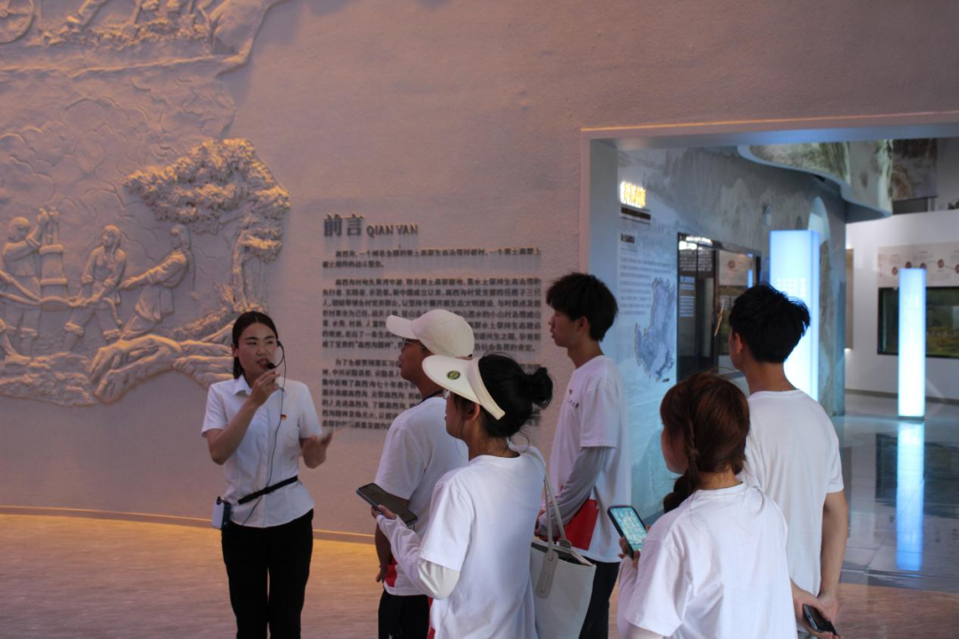 谢志豪、王泯景、李通情、宋江艳四位实践队员来到高西沟村水保生态教育基地,在讲解员的详细解说下进行更深层次的讨论学习。实践队员们循着参观顺序,一边记录取材一边讨论学习,通过展厅内的一串串数据、一幅幅图片、一篇篇报道感受高西沟村的沧桑巨变,体会高西沟村人民通过艰苦奋斗取得生态治理伟大成果的艰难与不易,学习“坚定信念,永葆先进;不屈不挠,艰苦奋斗;尊重规律,因地制宜;依靠群众,群策群力;勇于探索,与时俱进”的高西沟村精神内涵。