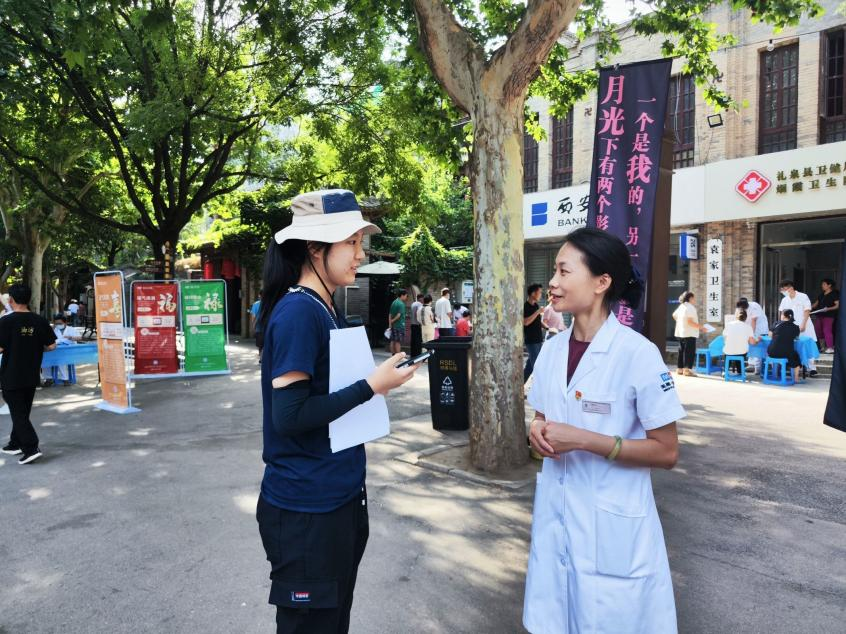 长安大学暑期社会实践队队长刘文蕾与公益体检团队展开交流。双方分享了各自的实践经验和成果,探讨乡村振兴和健康关怀的紧密关系。实践队队长刘文蕾介绍了他们在乡村振兴方面的实践项目和思考,而公益体检团队则分享了他们为乡村居民提供健康服务的经验和感悟。