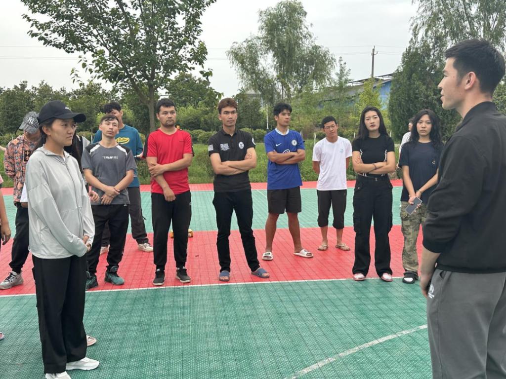 于汉中实习基地篮球场举办了一场别开生面的征兵宣讲会。参加会议的有2021级辅导员杨海城、参军退役学生霍加恩别克·海拉提别克以及实习基地的新疆、西藏籍全体民族生和其他有意参军入伍同学。