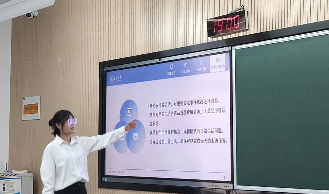 随后各支队伍就自己暑期社会实践项目的活动主题、活动形式、宣传渠道、项目计划以及活动意义等方面展开答辩并向三位评委老师展示了前期调研结果和自己实践活动的可行性。参与答辩的暑期实践队伍由来自太阳城网站