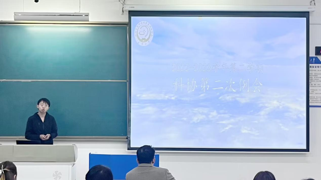 紧接着,常建东主席从五四评优、五小创、运动会三项工作总结着手,鼓励科协成员们积极参与各项科创比赛,在学院内起到带头作用,引领积极的科创风气,与此同时他对部门工作表现优秀的同学提出了赞扬,并鼓励大家向其看齐,提高工作积极性,打造科协美好未来。在会议尾声处,常建东主席对往后的工作做出了以下安排: