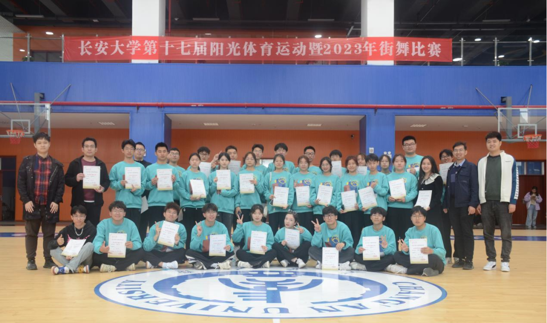 2023年4月2日,长安大学第十七届阳光体育运动暨2023年街舞比赛在渭水校区西区体育馆拉开帷幕,32名地测学子踊跃参加比赛,取得了团体第三名的优异成绩。比赛当天,学院团委书记苗行生、团委副书记余智勇、文体协会指导老师韩树鹏、辅导员陈子毅来到现场为运动员们加油鼓劲。