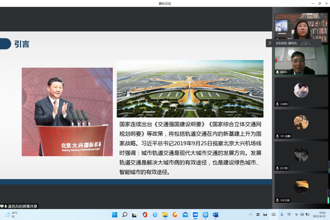 2022年4月22日晚上19:30-22:00,借助腾讯会议平台,地质工程系邀请西安市轨道交通集团建设公司副总经理温克兵作题为“城市轨道交通建设技术交流”的线上报告,作为抗击疫情系列活动的一个主要内容。讲座由地质工程系李萍主任主持,吸引了70余名师生参加。