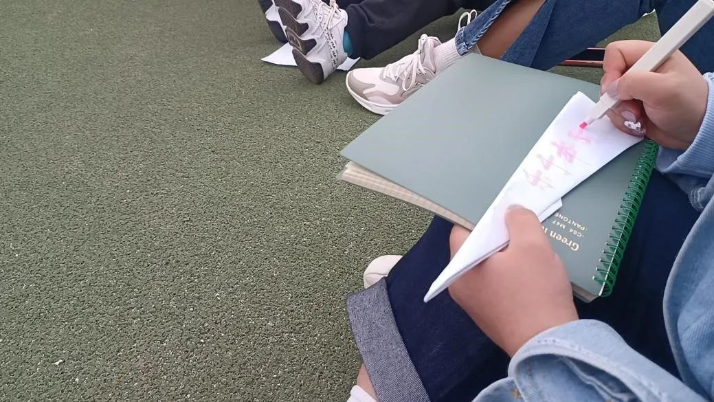 紧接着,沈硕同学弹吉他为同学们的歌声伴奏,“学习雷锋好榜样,忠于国家忠于党......”操场上,是同学们嘹亮、充满希望的歌声。随后,同学们在纸飞机上写上自己的活动心得,一起放飞希望。
