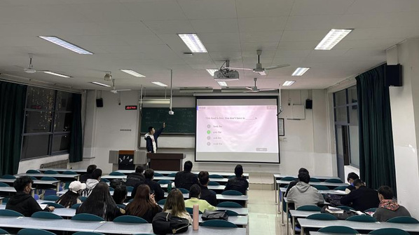 活动伊始,2020级学生刘金泽首先针对上个学期的学业以及期末考试进行了总结,然后为学弟学妹们开展第二学期的英语课程辅导,向他们讲解英语语法以及解题思路,助力他们更快更好地掌握英语这门语言。