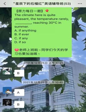 此次帮辅活动由各年级辅导员推荐成绩优异的同学为组长,主要围绕课程核心内容及重要例题进行讲解和答疑,并对组长讲的内容进行满意度调查。除此之外,由组长督促同学们每天将英语打卡记录上传至微信学习交流群,并由小组长完成汇总及记录工作,最后发给活动负责人留存。各民族同学纷纷表示在疫情期间会克服懒惰,坚持学习,团结一心,攻克疫情。2022,一起向未来。
