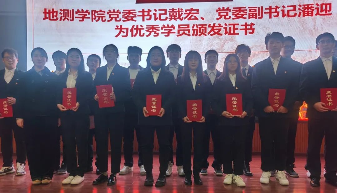 党委副书记潘迎为青马班第十一期优秀学员颁发荣誉证书,向他们表示祝贺并和同学们亲切合影留念。