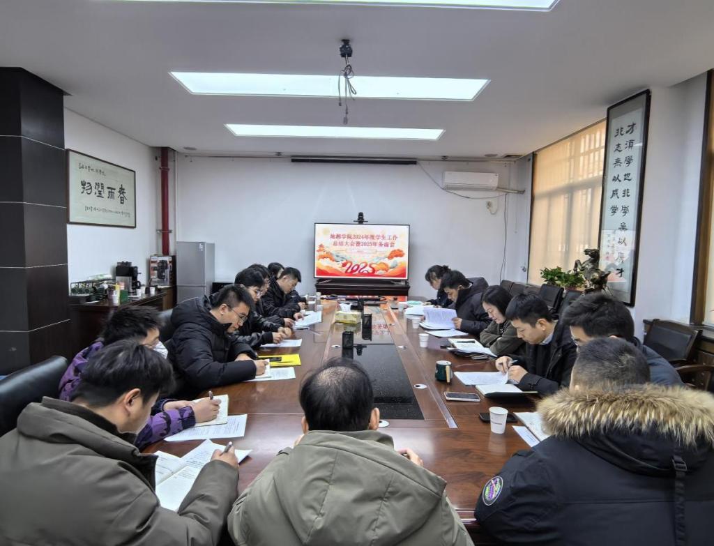 会议室召开2024年学生工作总结暨2025年学生工作发展研讨会,学院党委书记王树莹、院长李振洪、党委副书记潘迎及学工办全体辅导员参加。本次会议由学院党委副书记潘迎主持。