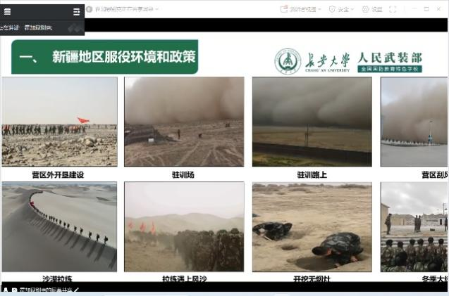 首先,由霍加恩别克·海拉提别克同学进行宣讲。他结合自身经历向同学们介绍了自身在新疆和田地区服役的环境,并从入伍待遇等方面为同学们详细讲解了在祖国边远地区服役的优势。同时,作为新疆少数民族学生,他也从饮食习惯、风俗文化、气候环境等方面,向同学们详细介绍了部队的人性化待遇,为少数民族同学入伍打消顾虑。