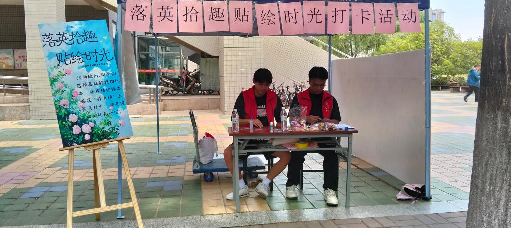 彩虹心理协会于2025年5月20日在树蕙园广场举办“落英拾趣,贴绘时光”打卡分享活动,本次活动吸引了全校百余名学生的广泛参与。