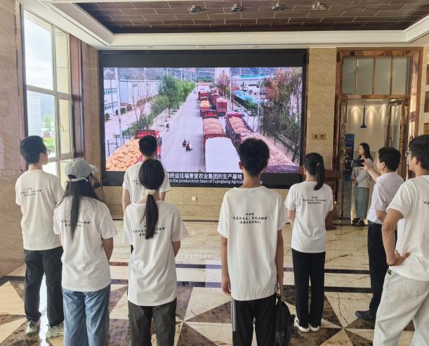 实践队随后走访中晟陇源农业有限公司、福景堂农业集团等企业,深入了解马铃薯产业链延伸成果。在深加工环节,马铃薯经过清洗、去皮、人工分拣、高压水切片、蒸煮制泥、脱水烘干等工序,转化为淀粉、薯片、薯条等多元产品,实现价值倍增。企业通过“党建+公司+基地+农户”模式,既保障原料供应的绿色安全,又带动周边农户共享产业链红利,形成党建引领下的产业协同发展格局。福景堂农业集团的综合展示厅,进一步展现了龙头企业在产业布局、技术创新与绿色发展上的示范作用,凸显了党建引领对产业融合的推动。