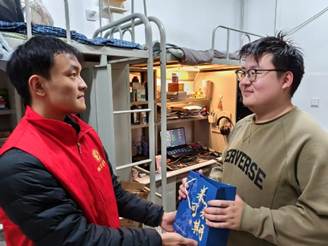 精心策划考研送温暖慰问活动。学院领导、辅导员及学生党员代表携手同行,通过定制贺卡传情、暖心福袋鼓劲、真挚祝福聚力,为逐梦路上的考研学子送上关怀与力量,让这个寒冬暖意融融。