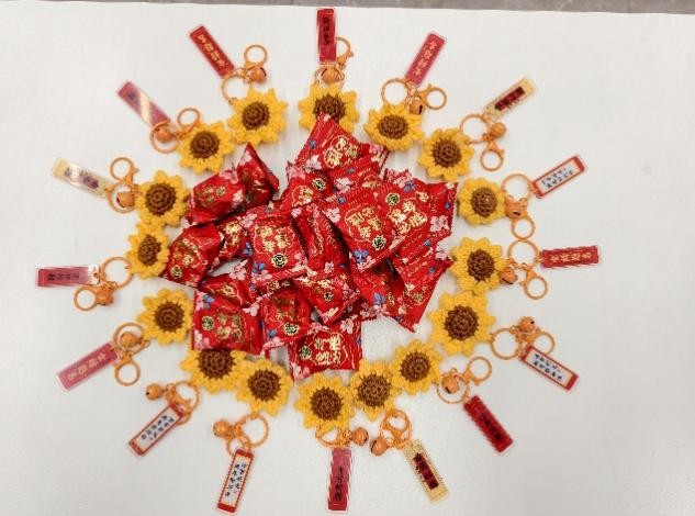 为贴合考研学子冲刺阶段的实际需求,学院精心筹备了兼具实用性与寓意感的定制福袋,将关怀藏进每一个细节里。福袋内不仅包含祝福贺卡,更搭配了多重“助力好物”:不仅有补充备考能量的零食,还有缓解焦虑情绪的解压小玩具以及象征“向阳而生、逐梦不止”的向日葵钥匙扣。这些寄托着学院对学子们勇敢追梦、不负韶华的美好祝愿。从物资采购、分类搭配到细致打包,工作人员全程用心筹备,让每一份福袋都装满“沉甸甸”的关怀,为学子高效备考提供坚实后盾,助力他们轻装上阵赴考场。