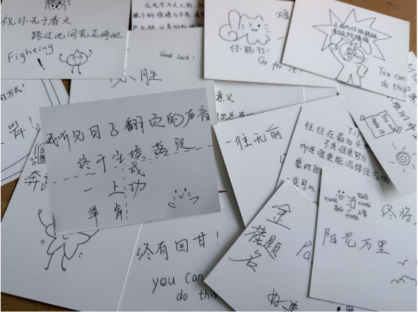 一张贺卡,承载万千期许;一行字迹,传递满满力量。学院特意为考研学子定制了精美贺卡,并写下暖心寄语。“以笔为剑,不负韶华”“全力以赴,未来可期”“提笔从容自信,合笔如愿以偿”,真挚的话语既肯定了学子们日夜苦读的坚持与付出,也饱含着对他们金榜题名的殷切期盼。一张张字迹工整、情意满满的贺卡,跨越了师生间的距离,成为学子们冲刺阶段的“精神加油站”,让他们在追梦路上倍感温暖与鼓舞。