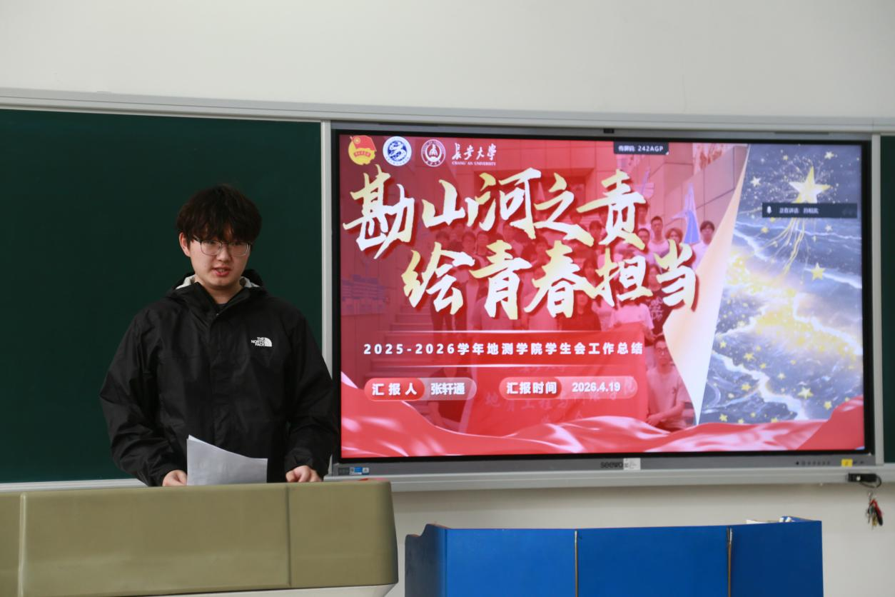 接着,杨东民进行发言。他肯定了过去一年中学院团学组织工作的丰硕成果,并围绕“为推进学校‘双一流’建设和国家‘教育强国’建设贡献‘地测人’的智慧和新生力量”阐述了对学生干部工作的期许和鼓励。他有关“提升学生干部的组织力和引领力”的发言吹响了此次大会的主旋律。最后,杨东民以“山海寻梦、不觉其远,前路迢迢、阔步而行”的诗意愿景有力地收束了本次发言。