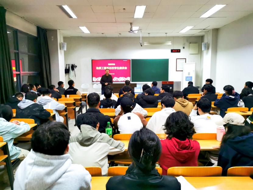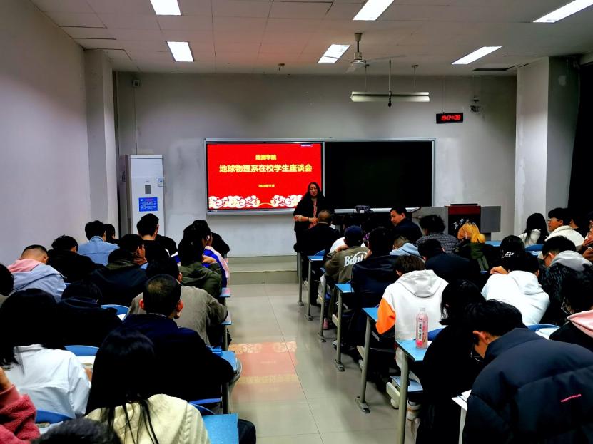 地质工程系座谈会由系副主任熊炜主持,系主任朱兴华对地工系基本情况及专业前景进行了详细介绍,对同学们提出了殷切希望。随后熊炜老师介绍了此次座谈会的目的和意义,听取了同学们对教学、管理、服务等各方面的意见建议,调研了本学期的教学效果。各班主任对课堂教学、日常生活等问题给予了耐心解答,鼓励同学们要挖掘自身潜能,进行学业规划,不断实现自己的人生价值与学业理想。