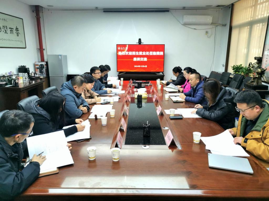 双方就大类招生及培养问题和拓展毕业生就业等方面进行了深入的交流研讨。王树莹代表学院对招生就业处带来的详实数据以及给予学院在招生就业方面的支持表示衷心感谢。并表示学院会进一步深入分析相关数据,加强招生宣传力度,加大就业帮扶力度,强化招生培训与科普讲座质效,多措并举,不断提升专业显现度与影响力,高标准谋划2025年招生就业工作,扎实推进招生就业工作高质量发展。