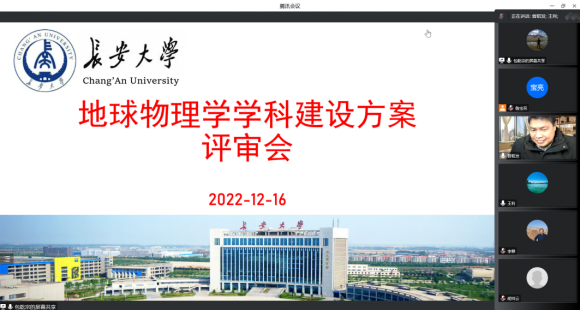 2022年12月16日下午,长安大学地球物理学学科建设方案评审会在线上召开。会议邀请吉林大学曾昭发教授、中国地质大学(武汉)胡祥云教授、中国科学技术大学姚华建、北京航空航天大学刘文龙教授、长安大学太阳城网站