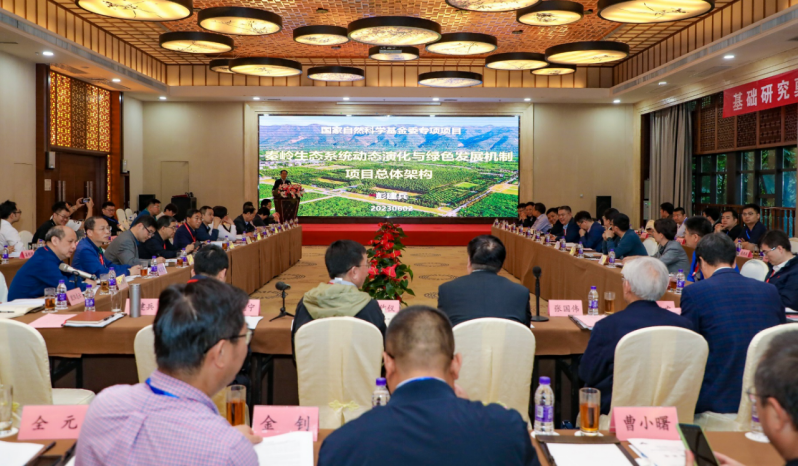 西北大学张国伟院士、中国科学院青藏高原研究所陈发虎院士、长安大学副校长范文教授、陕西省林业局副局长昝林森、陕西省自然资源厅副厅长王雁林、商洛市委副书记赵晓宁、国家自然科学基金委地学部于晟主任、管理学部刘作仪主任、吴刚处长、郑袁明处长、胡吉明主任、中国科学院生态环境研究中心欧阳志云研究员、北京大学刘鸿雁教授、华中农业大学史志华教授、清华大学鲁玺教授等领导和专家出席会议。项目负责人彭建兵院士、课题负责人中国科学院生态环境研究中心吕一河研究员、长安大学钱会教授、中国科学院生态环境研究中心郑华研究员及项目骨干60余人参加了本次会议。