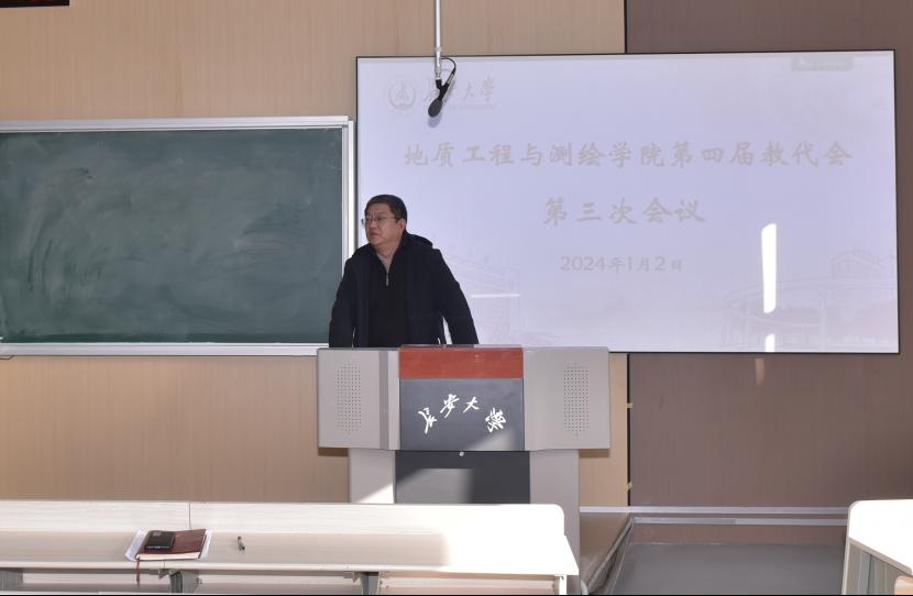 第四届三次教代会于2024年1月2日在长安大学南校区东院第二教学楼阶四教室举行,会议由学院党委副书记、院工会主席潘迎主持。