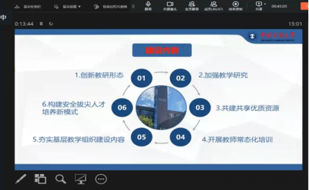 为落实虚拟教研室试点建设要求,深刻理解建设内涵,提升虚拟教研室及成员基于平台组织开展教学研究的能力和水平,发挥虚拟教研室在加强教学研究、推进教学改革、交流教学经验、促进协同发展、资源共建共享等方面的积极作用,教育部“安全工程专业虚拟教研室”启动会于2022年4月22日在线上召开。安全工程系翟越、李寻昌、李凯玲、李艳、李宇白等老师参会。翟越主任介绍了我校安全工程专业特色和学科优势,以及在虚拟实验、在线课程等方面的已有成果,并希望以此为契机加强交流,形成优势互补。