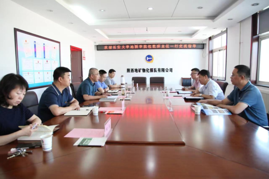 地球物理系包乾宗主任等一行3人前往陕西地矿物化探队有限公司交流走访。陕西地矿物化探队有限公司党委书记李新胜,副书记梁元盟,总工程师刘建利、副总工程师田靖、人力资源部主任何竞参加交流。