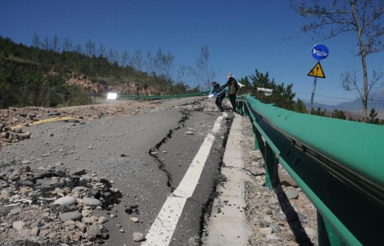 李家峡水电站坎布拉景区李坎公路滑坡导致路基开裂