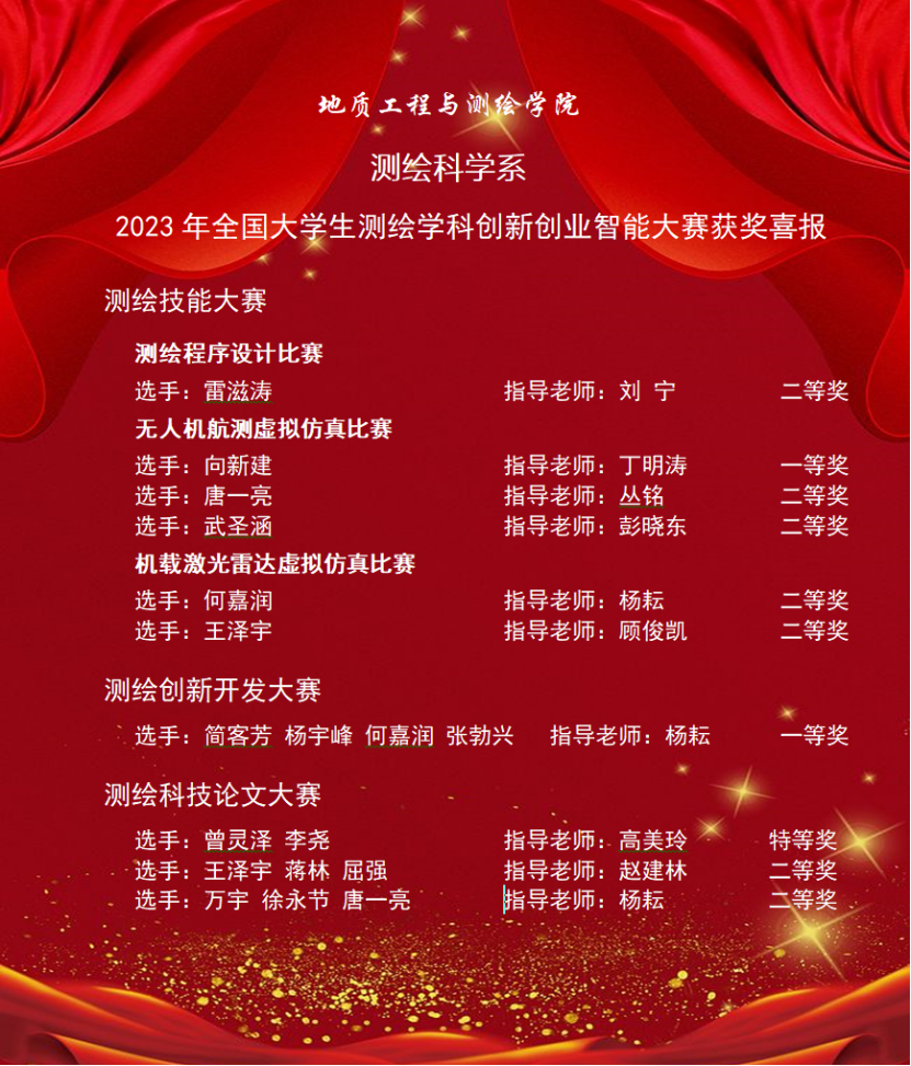 长安大学测绘专业本科生获奖名单