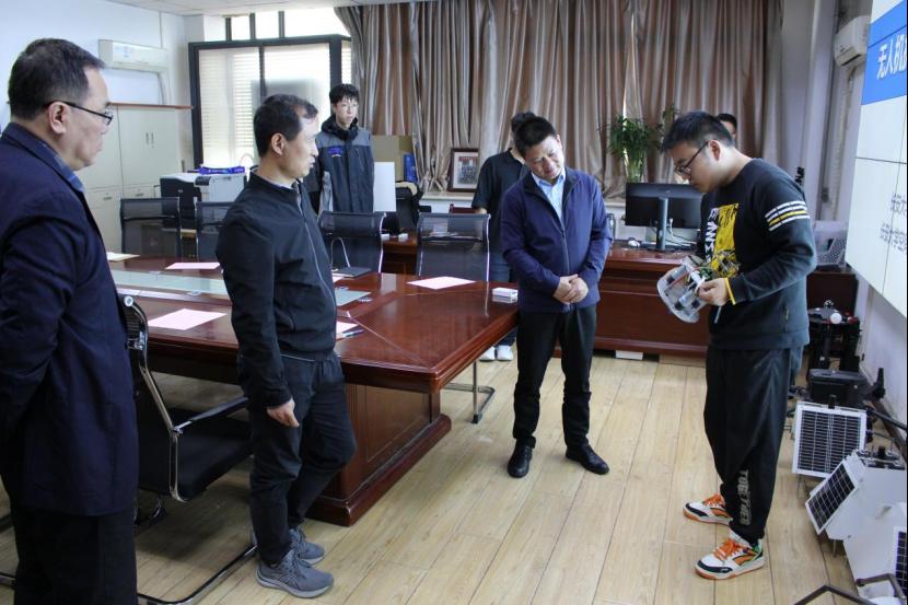 在长安大学北斗分析中心,刘志春一行听取了分析中心的发展历程以及“无人机抛投式”北斗实时监测系统的有关汇报,参观了我校研发的多款无人机投放式地灾监测设备,对我校在地灾领域的研究成果给予了充分的肯定,并与相关科研人员进行探讨。