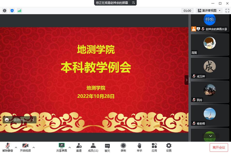 会上,学院专业建设与教学秘书赵梓余汇报了学校教学例会事项。