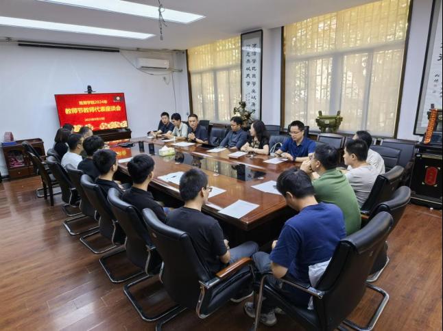 隆重举行2024年教师节教师代表座谈会,学院党政领导,荣休教师代表和新入职教师代表参加会议。会议由学院党委副书记、副院长欧阳韬主持。