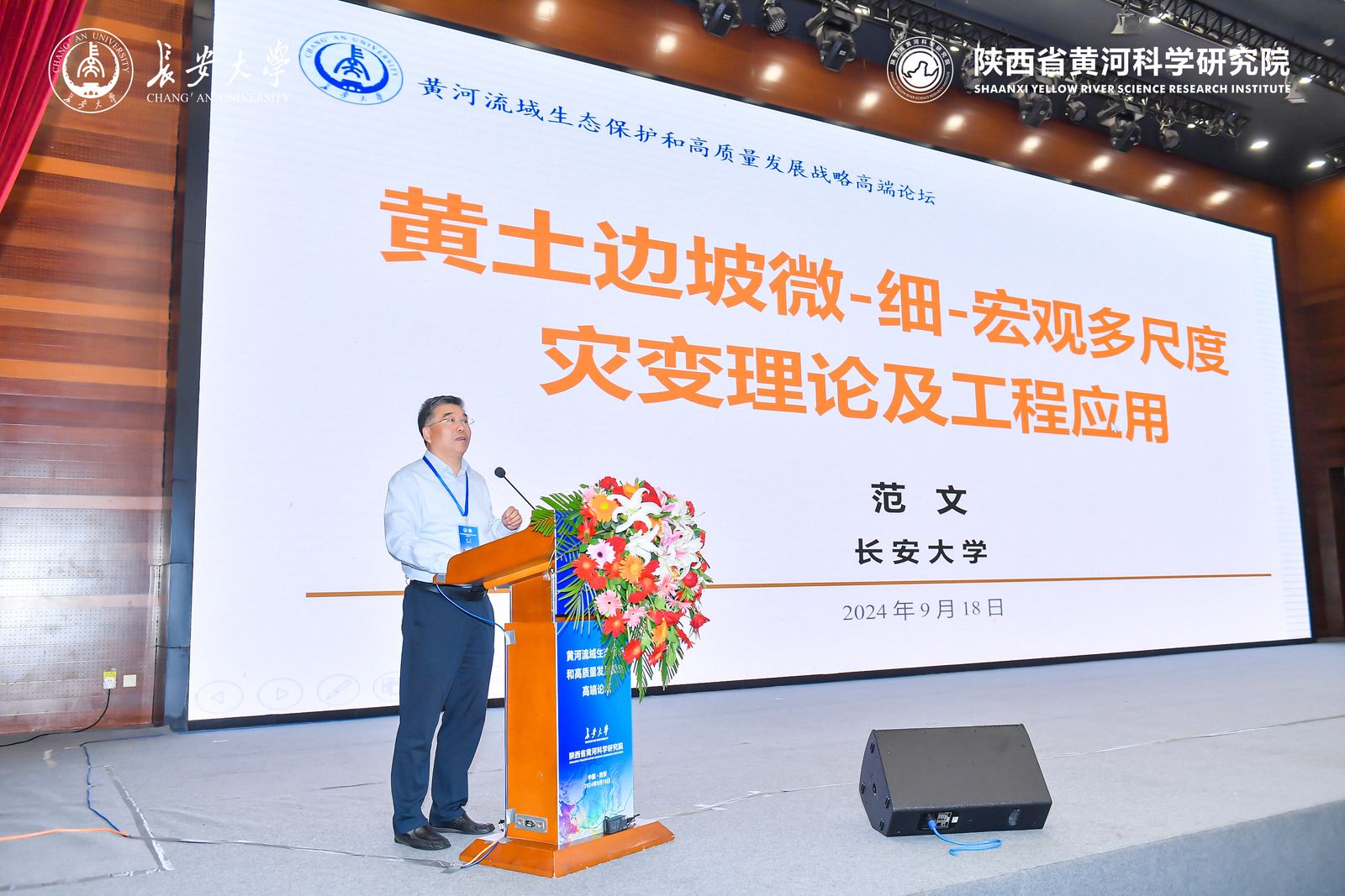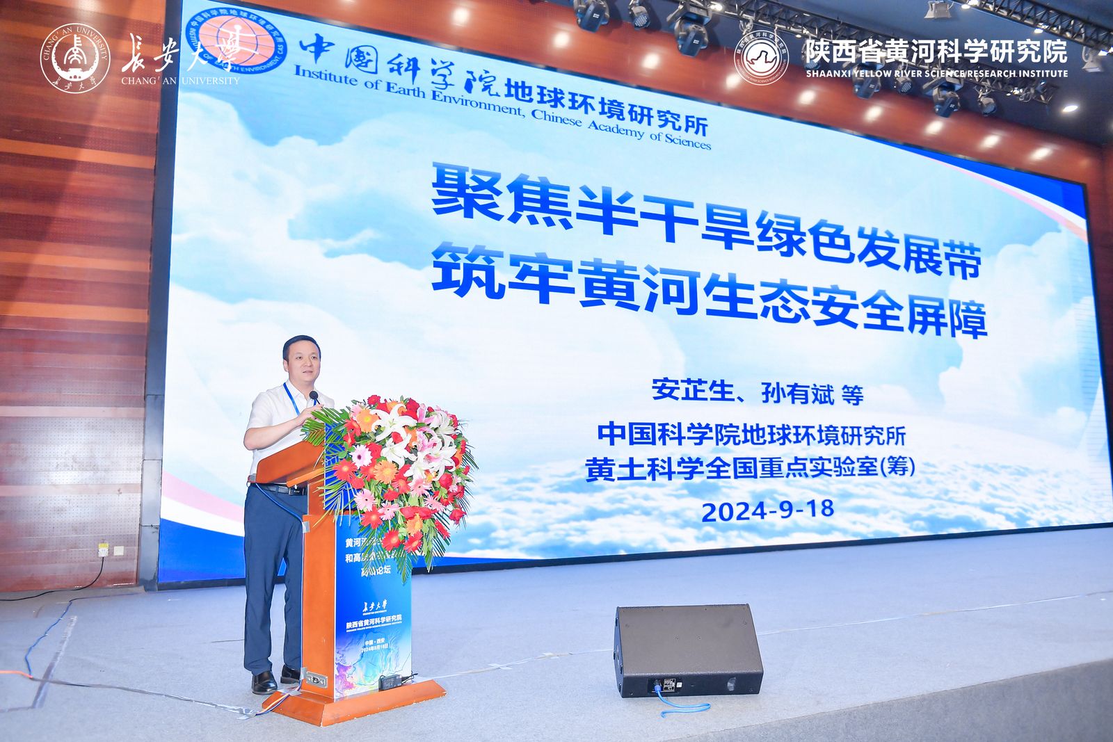 继2024年9月12日习近平总书记在兰州市主持召开全面推动黄河流域生态保护和高质量发展座谈会之后,黄河流域生态保护和高质量发展重大国家战略实施五周年之际,2024年9月18日,由长安大学和中国科学院地球环境研究所联合承办的黄河流域生态保护和高质量发展战略高端论坛(简称:黄河论坛)在西安市曲江惠宾苑宾馆召开。陕西省发展改革委员会、科技厅、自然资源厅、生态环境厅、水利厅、科学技术协会等单位领导莅临指导。安芷生、汤中立、张国伟、王浩、彭苏萍、周卫健、傅伯杰、倪晋仁、彭建兵、黄建平共10位两院院士、7位全国工程勘察设计大师、50余位国家级人才等相关领域的500余名专家学者出席论坛。长安大学沙爱民校长、中国科学院安芷生院士和陕西省发展和改革委员会南水北调办朱昱主任分别在论坛开幕式致辞,欢迎并感谢各位院士、领导和专家学者的到来,寄语黄河流域生态保护和高质量发展。