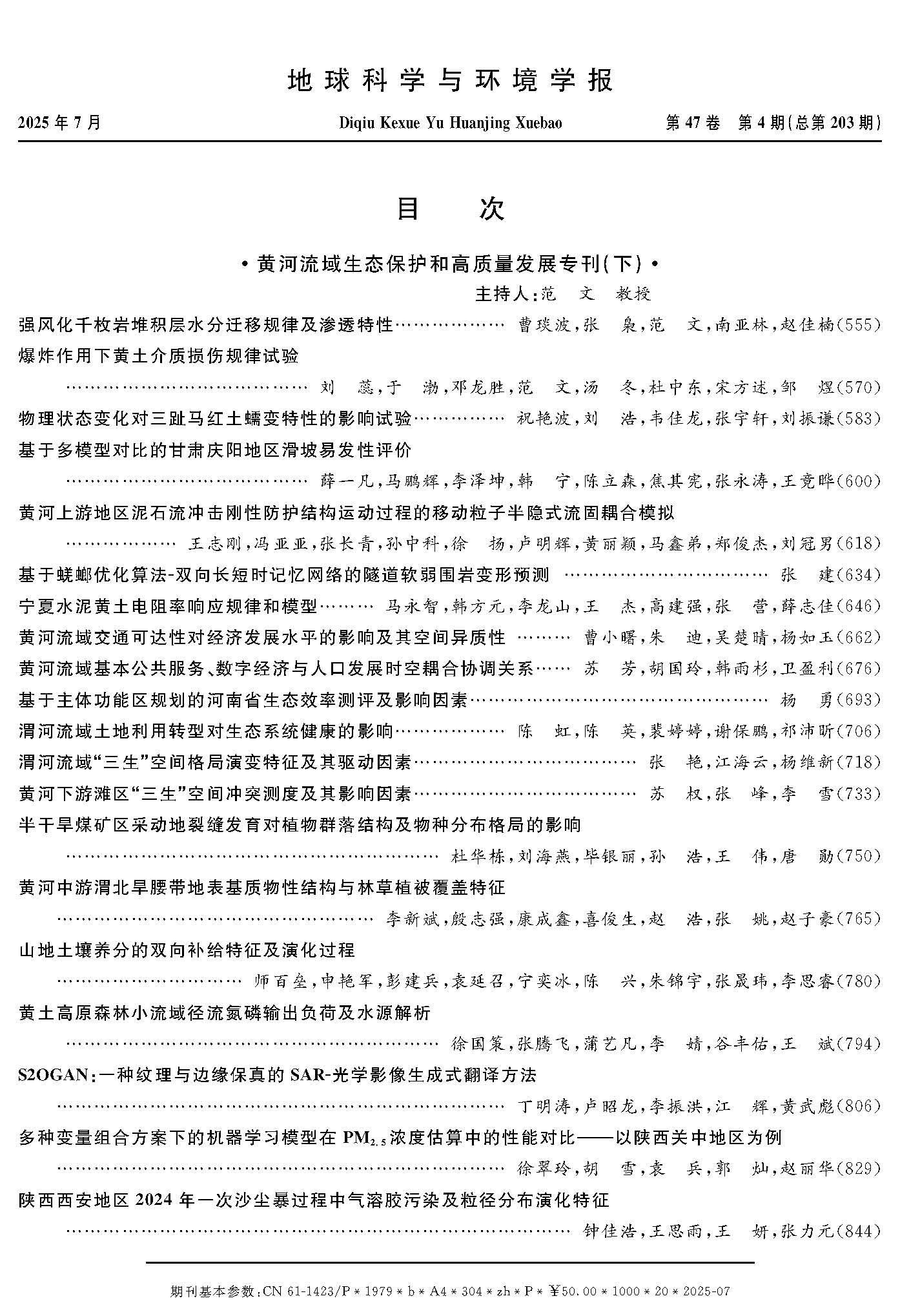 范文教授在《地球科学与环境学报》策划出版了“黄河流域生态保护和高质量发展专刊”。