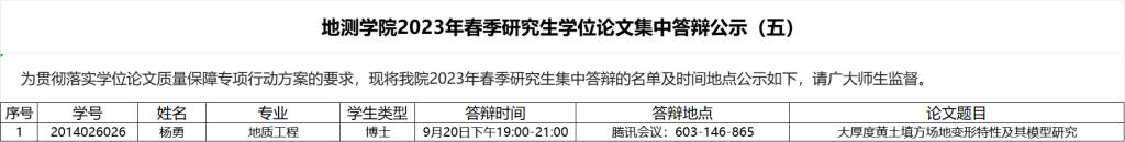 太阳城网站 2023年春季研究生学位论文集中答辩公示(五)