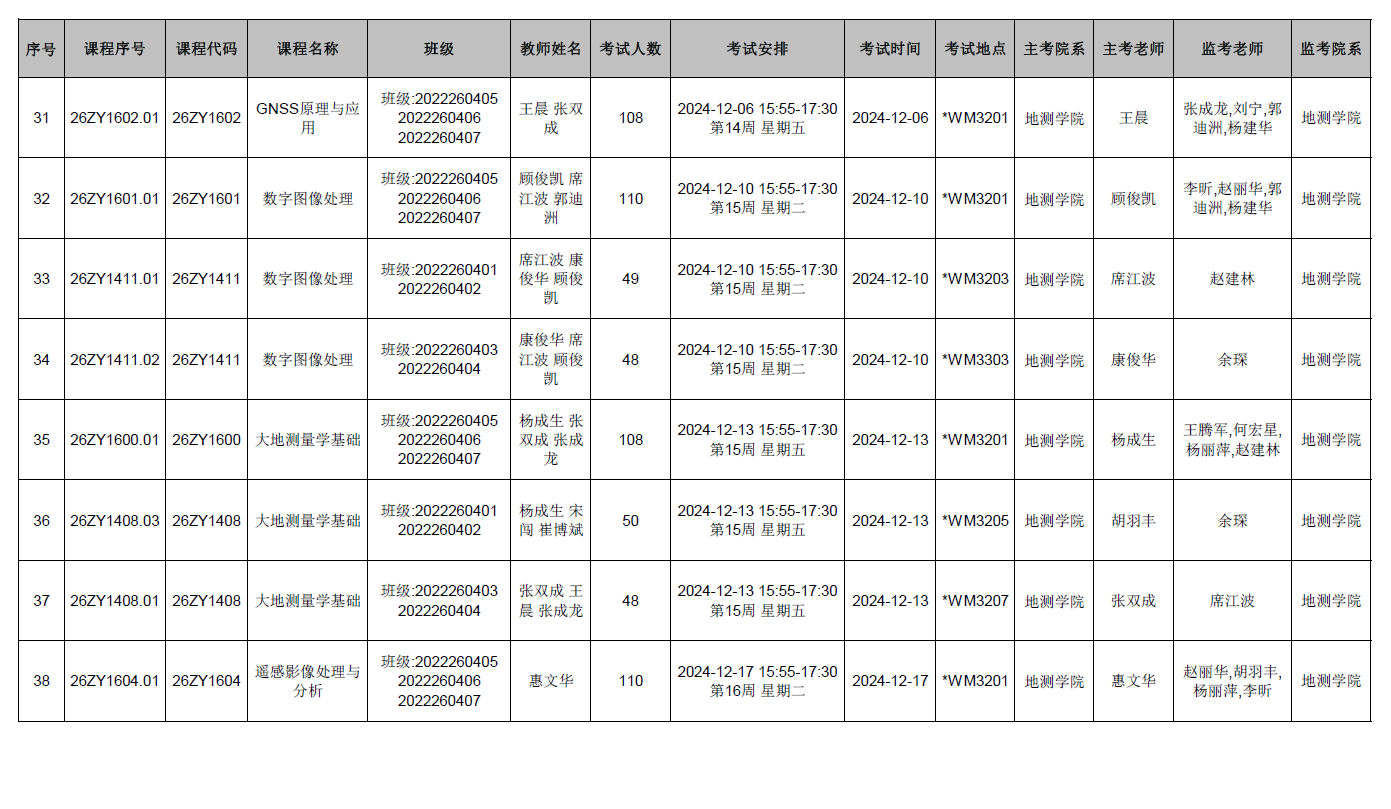 本学期第10周前结课的太阳城网站 开课课程期末考试监考安排已发布,监考安排学院已经在本科教务系统中填报完成(监考教师可同时在本科教务系统中查看监考安排)。为确保考试平稳顺利进行,学院已将相关监考工作安排表上传到附件中,请各位老师及时下载查阅,并按时完成监考工作。